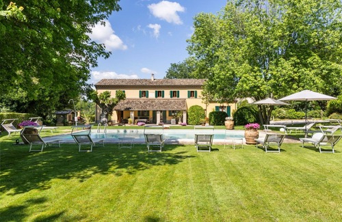 The villa has had a thorough restoration with love and eye for detail and has maintained the original characteristics and authentic style of an original manor of the Marches. The furniture is comfortable and warm. A large garden with swimming pool surrounds the house. There is a spacious roofed terrace with beautiful view where the guests can relax and enjoy their outdoor meals. At the front of the villa, situated in the garden, there is the swimming pool, surrounded by olive trees and a beautiful lawn.