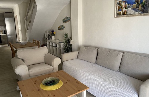 On the ground floor is the living room with comfortable seating area, sofas, TV and direct access to the veranda, fully equipped kitchen and dinning area, bathroom with Shower and WC.