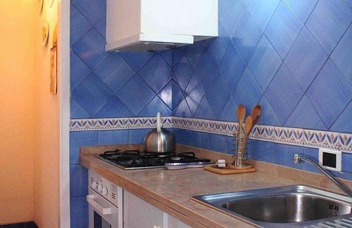 You will be able to enter the first kitchen through a corridor. It is equipped with a three-burner gas cooker and one electric burner, an electric oven, a refrigerator with freezer, an Italian-style coffee-maker and a kettle. The kitchen has no windows.