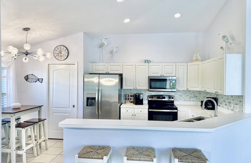 Your home away from home! Welcome to our beautiful, paradise home, Costa Del Sol! Located in Briarwood, Costa Del Sol part of the Del Sol Collection in Naples Briarwood. This home provides a tranquil and private atmosphere with magnificent lake views and a south-facing large enclosed lanai with a heated pool. This newly refreshed and fully air-conditioned, the four-bedroom and three-full-bath villa is equipped with all the amenities you need for an unforgettable vacation that is perfect for everyone. With bright, airy interiors that open out onto the pool and lake beyond, the calming atmosphere of the home will settle in from the moment you arrive. Relax amidst peaceful lakeside scenery where ducks and otters swimming by are not uncommon!