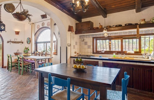Immersed in rustic ambience and scenic views, this home will lure you to stay here. Located in Partinico, this villa can accommodate 12 people in 5 bedrooms. Ideal for a family, kids are also welcome here. Proximity to sea would allow you to make frequent trips to the beach and admire the sea, waves and splendid sky.