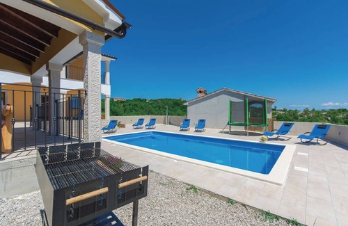 Nestled in the serene Skitaca area, this beautiful 3-bedroom villa offers a tranquil getaway with a private swimming pool and stunning sea views. The villa accommodates up to 8 people, making it an ideal retreat for families or small groups. The outdoor area is perfect for relaxation, featuring 10 sun loungers around the pool, a BBQ for culinary enthusiasts, and a lovely terrace with sun shade. Additionally, children can enjoy hours of entertainment with table tennis and a trampoline, ensuring everyone has a memorable stay. The villa's interior is thoughtfully designed for comfort and convenience. The ground floor features a spacious living room with a fireplace, as well as a fully equipped kitchen and dining area. Upstairs, the three bedrooms, each with an en-suite bathroom, offer private retreats, and each room has access to a balcony with breathtaking views. The property also offers free Wi-Fi and parking, ensuring a hassle-free experience for guests. Located just 5 km from the village of Koromačno, guests can enjoy local amenities such as a grocery store, coffee shop, and pharmacy. The nearby town of Labin (23 km) offers a historical old town to explore, while the beautiful beaches of Koromačno and the popular Scuba center Sv. Marina (15 km) are perfect for water activities. With the larger city of Pula (60 km) and other attractions like boat rentals at Autokamp Tunarica, this villa is ideally situated for both relaxation and adventure.