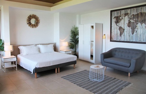 The rental villa LO SCOGLIO in St-Barths consists of four air-conditioned bedrooms and is the ideal vacation spot for a family or a group of friends traveling together. Two bedrooms are located on either side of the living room and have en-suite bathrooms. A third smaller bedroom is located at the end of the covered terrace. This bedroom must share its bathroom with one of the main two bedrooms, more suitable for children. A fourth bedroom located in an independent bungalow is a private studio apartment with a bathroom and a kitchenette.