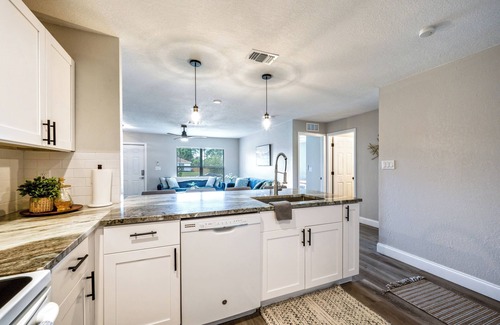 Roll back in time to a Mid Century Modern design. Wake up rested in a peaceful, clean, safe, spacious and stylish home away from home. Master suite with luxury tiled bath. Master suite has modern queen size canopy bed with fandelier and spacious closets. 2nd bedroom has queen size bed with fandelier and roll-a-way bed. 3rd bedroom has queen size bed with twin trundle bed, ceiling fan, smart TV and dedicated work space. Guest bedrooms share a full size luxury tiled bathroom. Fully furnished kitchen with everything you might need for cooking while away from home. Kitchen has GE dish washer and microwave. Help yourself to the complementary coffee bar (Keruig and drip style) Mid Century modern style living room with ceiling fan and 2 large sofa's to relax in comfort while streaming your favorite movie or sporting event on the 55 inch Samsung smart TV. Off the kitchen is an outdoor serene patio seating to sip your morning coffee. Full size Maytag washer and dryer. Single garage. Perfect for working travelers, digital nomads, and larger family Groups. WIFI included. Value priced. We have welcomed many seasons of baseball players for Spring training at Red Sox Jet Blue Stadium and Minnesota Twins baseball stadiums. Ask about discounts for extended stays and returning guests. Accommodates 1-8 people comfortably.