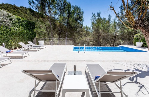 Villa Mas Mila is a beautifully modern, exquisitely decorated villa. The decoration says elegance in every corner yet this stylish villa also offers luxurious comfort resulting in a villa perfect for hanging out in. The spaces within the house are bright with ceiling to floor windows giving views over the pool and out into the extensive country side.
