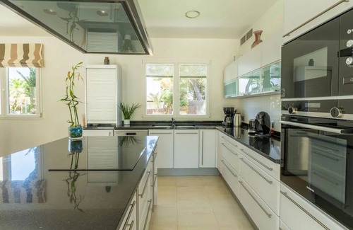 Just a short walk from the beach, the villa Mon Obert is located in FELANITX. The 2-storey property consists of a living room, a fully-equipped kitchen, 5 bedrooms and 4 bathrooms and can therefore accommodate 8 people. Additional amenities include high-speed Wi-Fi (suitable for video calls) with a dedicated workspace for home office, a TV, air conditioning, a washing machine, beach/pool towels as well as children's books and toys. 2 baby cots and 2 high chairs are also available. This villa features a private outdoor space with a pool, whirlpool, garden, open terrace, covered terrace, balcony, and barbecue.