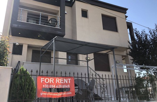 150 meters from sandy beach, in aria country houses, and can be rent hall house including studio in ground floor, or separately. 8 min by foot by the sea to nearest restaurant in the village, caffe, minimarket… and 20 min by foot by the sea or by car 2 min to town Nea Moudania . 50 kl from Thessaloniki airport. Househave sea view, we are in front 150 meters from sandy beach of Portaria Bay. The sea is not deep. It have Blue Flag- the symbol of cleanness and ecological place. Nearest hotel 15 min by foot and it is 5 stars. New house 3 floors in classic stile full equipped. Suitable for capls, families with children and friend. Rent able all year. We have terrace, and it’s comfortable to seat and to have your coffee or lunch or dinner. Near is village with traditional restorations, cafes, ships, pharmacy, bakeries ects.