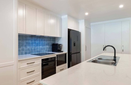 Accommodating up to four guests, the two bedrooms offer comfortable sleeping arrangements, with the primary suite boasting a king-sized bed and a luxe ensuite bathroom with a spa bath. The second bedroom provides the flexibility of a king-size bed or two single beds. The main bedroom also features a 32" television, ideal for relaxation and entertainment. Additional amenities include a main bathroom with a walk-in shower, as well as in-unit laundry facilities equipped with a washing machine and dryer.