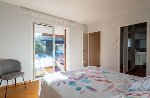 You are 1.7km from the lake beach, perfect for boat or paddle rides. You are 1km from the city center, where the market and restaurants are located. You are also 19km from Biscarrosse Plage to try your hand at surfing lessons and 26km from the Pilat dune. On a plot of 1000 m², the house includes: A large living room with a TV corner with WIFI (fiber), a fitted and fully equipped open kitchen (oven, dishwasher, microwave, etc.) as well as a pantry. Three pleasant bedrooms are available with double beds (two master bedrooms with their own bathroom and a separate bathroom). Three WCs. Outside, an unheated salt swimming pool with a south-facing terrace including garden furniture where you can enjoy your cocktails. A second terrace on the north side is also available to enjoy your meals. It is possible to park within the property. A sunny vacation is waiting for you!