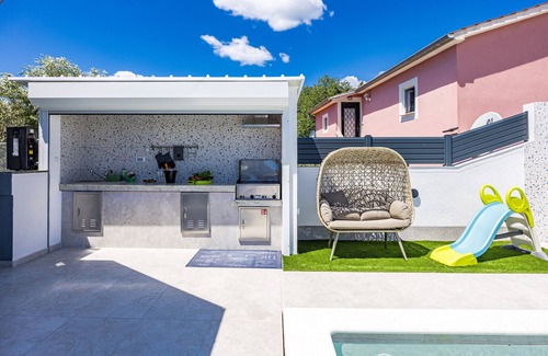 Villa Spa Otium for 8 people with 32 m2 heated pool, outdoor cinema, kids playground & spa area is located in Loborika. Villa Spa Otium for 8 people with 32 m2 heated pool, outdoor cinema, kids playground & spa area provides accommodation, featuring Balcony/Terrace, Sports/Activities, Entertainment, among other amenities. This Villa features Balcony/Terrace, Sports/Activities, Entertainment, to make your stay a comfortable one.