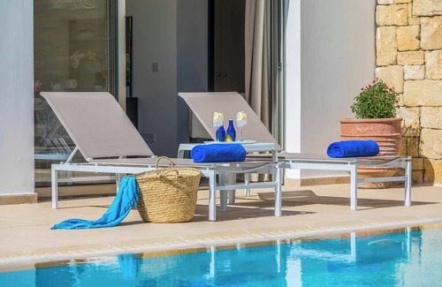 It's hard to pick the best part of Villa Stephanos, with its courtyard-style pool terrace andthe gorgeous wellness room with a mosaic hot tub anddomed roof. You'll find all rooms on the ground floor, including the three spacious bedrooms, each with its own ensuite, air conditioning,ultra-fresh linen and complimentary pool towels. A fully equipped kitchen is at your disposal, and an ideal space for cooking up a storm for friends and family.