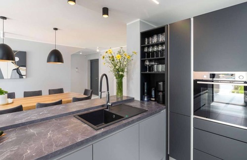 The villa with a total area of 240 sqm is spread over two floors. The ground floor has a living room, fully equipped kitchen, dining room, separate toilet and three bedrooms with attached bathrooms. On the first floor of the house there are two bedrooms, each with its own bathroom and balcony.