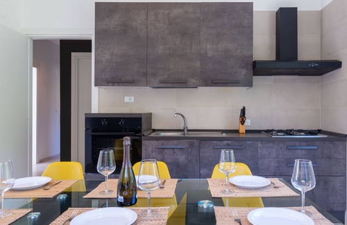"Villa Zaferina (CCO113)", 4-room house 95 m2, on the upper ground floor. Modern and tasteful furnishings: living room with satellite TV. Exit to the balcony. 2 rooms, each room with 1 french bed (160 cm). 1 room with 1 x 2 bunk beds. Exit to the balcony. Open kitchen (oven, dishwasher, 4 gas rings, toaster, kettle, freezer, electric coffee machine) with dining table. Shower/WC. Gas heating. Small balcony, patio roofed. Barbecue, deck chairs (6). Facilities: washing machine, children's high chair, baby cot. Internet (WiFi, free). Please note: non-smokers only. Maximum 2 pets/ dogs allowed. IT097023C2275CWDP7