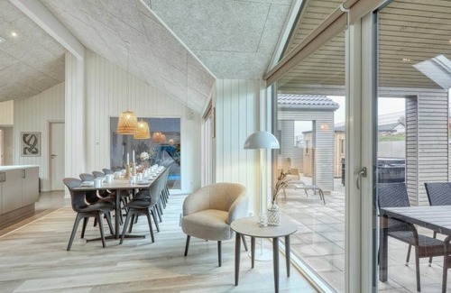 The Tramser See, nestled in northern Germany, offers a serene escape with picturesque surroundings. The VillaVilla pool house, just 50 meters from the lake, provides a perfect blend of relaxation and entertainment. With its own pool area, outdoor whirlpool, shower, and sauna, water enthusiasts and wellness seekers can indulge in endless rejuvenation. The open-plan living space invites communal dining, storytelling, and gaming with amenities like billiards, darts, and table tennis. After a day of leisure, unwind with a movie in the cozy sofa area before retiring to one of the five comfortable bedrooms or two cozy lofts, ideal for children and teens.
