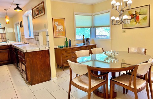 The Cappelli House is a renovated and updated vintage home appointed with original mid-century modern furniture and decor. Refinished fir floors, porcelain and stone tile, remodeled bathrooms and redwood deck with hot tub and BBQ. Located 2 blocks off Main Street, this three bedroom two bath home is ideally situated to enjoy all that Murphys has to offer: walk to restaurants, wine tasting, shopping and live music. This little town has been called the 'Carmel of the Foothills' and was named 'One of the top 10 Coolest Small Towns in America' by Frommers. Once the stomping-grounds of the likes of Mark Twain and Brett Harte, today Murphys is a well preserved and welcoming gold rush town with a laid-back atmosphere and modern amenities.