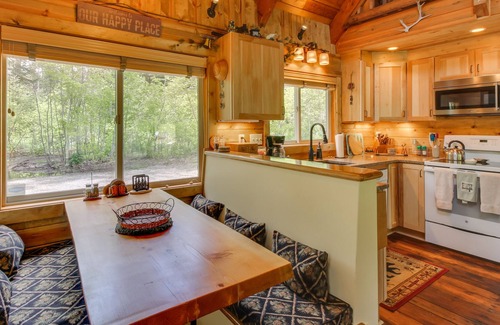 Find your happy place at this cozy cabin in Cle Elum, perfect for guests with furry companions. This home boasts a private location on the Yakima River with lovely water views! Unwind on the covered wrap-around deck with ample seating and a propane heater for enjoying the scenery in all weather. The newly remodeled interior has a bright atmosphere with an open living area and a gas fireplace.