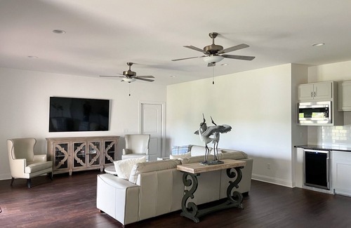Newly built home located on the Auburn University Club golf course, just miles from campus- perfect for game days or graduations. This outstanding property boasts 4 large bedrooms, accommodating up to 8 guests, including 2 master suites, perfect for couples or families traveling together. In addition to the open kitchen and living room upstairs, this home features a luxurious living area downstairs with a convenient wet bar, providing extra space for your guests to relax and enjoy. High-speed internet along with smart TVs are in all bedrooms and both living areas.