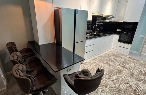 Nestled in Dushanbe, this fabulous apartment boasts 3 cozy bedrooms - one with a king bed, another with a bunk bed, and a third with a comfy sofa bed. With 2 sleek bathrooms featuring a shower and bidet, guests can freshen up in style. The seat area offers an extra space with a sofa with 85’ TV for relaxation . Our place will help you feel at home while you're traveling in Dushanbe.