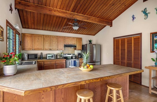 Your kitchen is fully equipped with more than just the essentials making it easy to dine at home. You will probably want to make good use of your BBQ for grilling your favorite foods including fresh, island fish. Be sure to visit at least one of Kauai's Sunshine Markets (farmer's markets) that take place in a different town each weekday. You'll find lots of fresh, local produce to complement other ingredients for tasty, culinary treats.