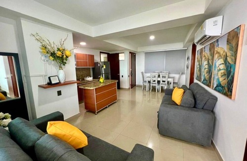 Located in Cartagena, this welcoming apartment lets you experience it all. Bocagrande Beach is just steps away and Malecón Bahía de las Ánimas is within an easy 7-minute walk, so leave your car at the property, which offers onsite parking.
