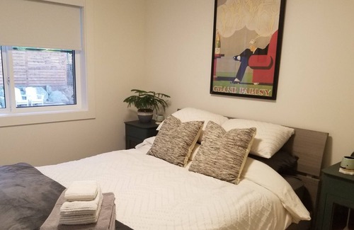 Gorgeous new home in the beautiful quaint neighborhood of Deep Cove. Free WI FI, in suite laundry, air conditioning and heat pump. Fully stocked kitchen with dishwasher and ice maker. Walk to amazing secluded beaches, launch your kayaks, paddle boards, charter a sail or fishing boat 5 mins down the road at the Deep Cove Marina. Enjoy world class French cuisine at the Deep Cove Chalet, or sip local sparkling wine from the local winery on one of the ocean view front decks. Stroll to farmers markets, Horth hill park, walking and horse trails, and much more. BBQ in the private, fully fenced (pet friendly) back garden. Truly a secret gem of a spot. Only 7mins to ferry, airport, or Sidney! Aprox 40 mins to Downtown Victoria.