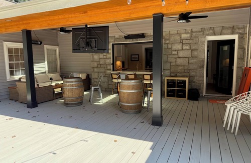 Ideal location! It's a10-minute walk to downtown Clemson, about the same to Death Valley, and just a few minutes further to core campus! The walk to all destinations is through a beautiful, wooded neighborhood. The main floor of our house has an open-plan kitchen / family room, two bedrooms both with en suite bathrooms, and a large covered porch and uncovered deck. The upper floor has two more bedrooms that share a common bathroom.