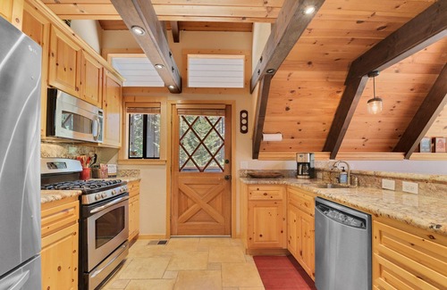 This newly remodeled classic chalet is a sure winner for your mountain getaway! Located in the ever popular Blue Lake Spring and walking distance to Fly-In Lake (fees apply) you will also have access to Snowflake Lodge with pool, lake, tennis/basketball/volleyball and bocce ball courts, movie night, restaurant and lots of fun activities (fees apply). Enter into the spacious great room with soaring ceilings and a gas log stove ( + forced air heat) to cozy up to while watching the snow fall from the floor to ceiling windows. Whip up a mountain meal for the crew in the fully stocked kitchen with gas cooking stove, Stanislas steel appliances and granite counter tops. With 2 bedroom on the main floor both with Queen beds + a loft with 4 Twins there is room for 2 families to sleep comfortably. The extra large deck is the perfect spot for entertaining, BBQing or for just relaxing and sipping a cool drink after a day of exploring all the Sierra has to offer. Surrounded by pines the Berg Haus is where you want to be for your next Sierra Getaway!