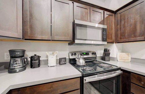 The fully stocked kitchen makes meal time a breeze. Prepare a five-star meal using a top notch set of non-stick pots and pans along with complementary cooking essentials.