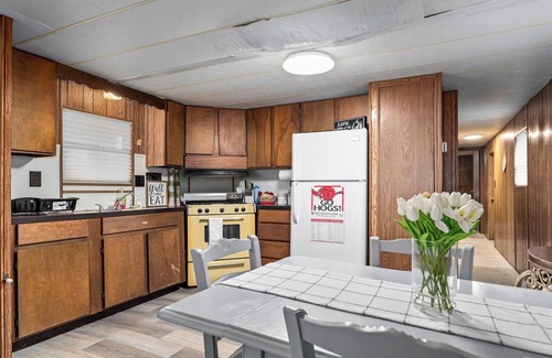 Unwind in Cookson at this cool mobile home. Enjoy the views of Lake Tenkiller from the big blue deck at The Shoebill! With 2 bedrooms featuring a king and queen bed, AC, Stocked Kitchen, Keurig and Drip Coffee Makers with Coffee Mate Liquid Creamers, WiFi, and heating, guests will feel right at home. The quaint property also includes a washing machine and dryer for convenience. We think our place will help you experience everything Lake Tenkiller has to offer. Walking distance to Snake Creek Marina & Boat Slips! TVs in Living Room & all bedrooms, LOTS of board games and outdoor games like Cornhole and Giant Checkers! It's not fancy, but it's close to the water and a comfortable place to have fun at the lake!