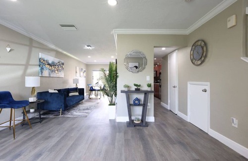 Welcome to our beautiful 3-bedroom modern home in Miami Gardens, just a 7-minute walk to the stadium! This stylishly designed space features a spacious layout with a king bed in the master suite, perfect for families or couples. Enjoy the open-concept living area, fully equipped kitchen, and private backyard for relaxation. Ideal for game day stays or exploring the vibrant city. This home offers comfort and convenience, making it your perfect Miami getaway. Book now!