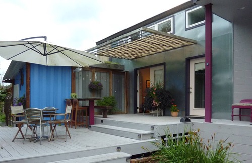 The West Wing studio apartment has a private entrance, located in a Warehouse building that has been turned into a home and artist studios. The studio apartment has a tall, lofty ceiling which includes a kitchen with soapstone counters and a fully tiled bathroom with shower and a queen size bed.