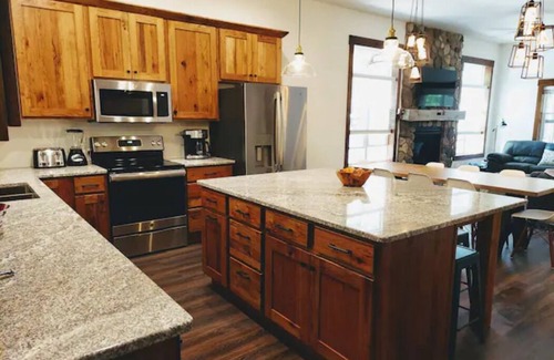 As for the house, the 4 bedroom, 3 bath home has plenty of space to accomodate a group up to 10 people. The main level includes a spacious master suite with a King bed and walk in curbless tiled shower and skylight, a second bedroom with a queen bed and a window seat, and 2nd full bathroom with a tub/shower and another skylight . The lower level has an additional bedroom with a queen bed and a bunk room with 2 twin over full bunks, a full bathroom with a shower and a rec room area with a 70" tv.