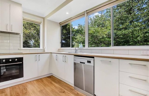 The kitchen – compact and modern! The recently renovated kitchen has everything you need including electric cooking, microwave, family sized fridge, dishwasher (YAY!!!) plus a DeLonghi coffee machine. The open dining area will provide you with all your basic needs and includes dining seating for 6.