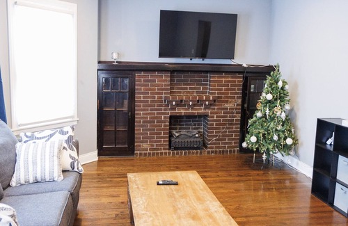 Warm and spacious bungalow in a quiet neighborhood. Free street parking available and a gated yard. Security cameras at the entrances. There are two levels with a den/ living area on each level to relax in. A dedicated work space with a full size desk is also provided. There is a bathroom on each level. There are two tubs and a walk in shower. The kitchen includes stainless steel appliances and an eat-in area. Central heat and air throughout the home.