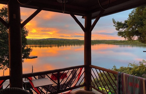 New to the rental market in 2025. As you enter the private gated entrance and descend through our fields that are great for star gazing, you will be in awe at the most picturesque vista in the Belgrade Lakes area. Positioned on several hundred acres, there are miles of walking trails that you can access directly from the house. This private Adirondack Style house in Mount Vernon is 25 feet from the waters edge on Ingham Pond, with easy boating access on to Long Pond and Belgrade Lakes Village. Ingham Pond is home to loon families every year. A kayakers heaven!! Standup paddle boarders heaven!! Fisherman's heaven!! We have a lot to offer. The house sleeps eight, offering 3 cozy bedrooms with 2 queen beds, 1 full bed, and 1 bunk bed. The 2 bathrooms are equipped with showers and 1 with a tub. Hair dryers are supplied for your convenience. Amenities include heating, WiFi, Direct TV, dishwasher, washer, dryer and a small office with desk and chair. Our drinking water comes from a deep drilled artesian well that has been tested and is safe. [Optional bunkhouse that sleeps 5 and has a full bath is available with an extra charge. Contact owner. Bunkhouse is only available to guests that rent the main house and must be rented for the same time period as the main house.] Guests can relax and unwind at this awesome retreat. Up to two pets are allowed with an additional $125 pet fee. We supply two kayaks, a canoe and very large dock and swim raft. If you bring your own boat, there is a State boat launch on Long Pond that allows you to take a scenic boat ride to Ingham Pond and The Adirondack. Boat rentals are available from Central Maine Boat & RV Rentals. Call 207-931-8820. There is a regulation size horse shoe pit too. Enjoy your time with the loons in a private, peaceful, tranquil setting. WE ONLY ACCEPT SATURDAY TO SATURDAY ONE WEEK RENTALS DURING JULY AND AUGUST. JET SKIS AND WAKEBOARD BOATS ARE NOT PERMITED. IF YOU CARE TO SUPPLY YOUR OWN TOWELS AND SHEETS, WE WILL DEDUCT$200 FROM YOUR RENTAL FEE.
