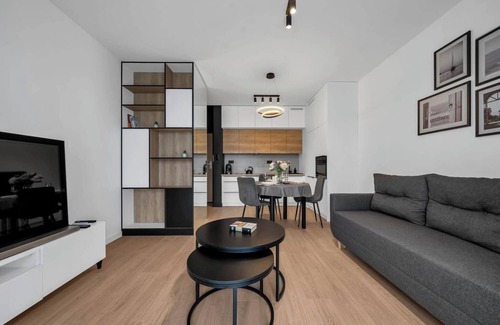 Discover the perfect urban retreat in our modern and spacious 40m² apartment, managed by Rentujemy. Ideally located on the 4th floor, this apartment is designed to comfortably accommodate up to 4 guests. You'll love the two rooms, featuring a serene bedroom with a queen bed and a cozy living area with a sofa bed, ensuring a restful stay for everyone.