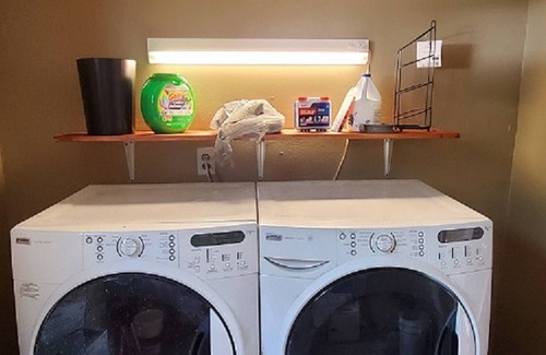 The kitchen, living room, dining room, entry mud room, and closets are all for your use to be shared with the other guests. You have a key pad to open your room that is different than the side entry door to the house. There is one downstairs bathroom and one upstairs bathroom. There is storage space in both. The downstairs bathroom has a washer and dryer inside the bathroom the washer and dryer is shared with everyone. It has laundry soap, bleach, fabric softener for you to use if you don't have your own. Both bathrooms have a shower, tub, sink, toilet. The kitchen is a fully furnished country style. The home does have a TV and a computer desk in the living room and your room. The wifi is 400 mbps up and down with 2000 gb data allowance per month total for the whole house.