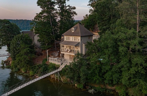 Simple luxury awaits you in this lakeside retreat with a rustic modern feel. No detail was spared in outfitting this space, all with breathtaking lake views from nearly every window. The double slip dock is steps away, complete with SUPs, kayaks, a lily pad for swimming...even a lift for your boat! Perfectly located within a gated, private hamlet with access to the hilltop community pool and clubhouse. Free dockside delivery with pontoon rental partner and private Level 2 EV charger as well.