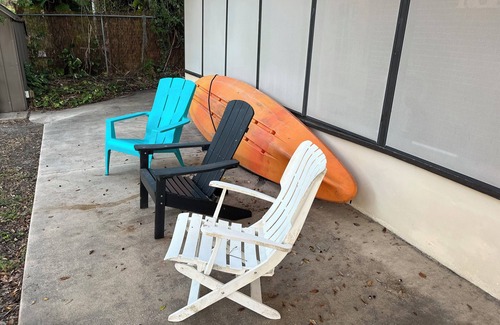 Boat ramp and dock, perfect for boaters. Can launch jet skis and small boats at house, and very close to Bayport ramp for larger boats. Deep canal and dock is great for most size boats. Perfect location for boaters wanting to go scalloping or fishing in the gulf. Located in a quiet wooded setting of full time residents on dead end street. Modern kitchen with granite countertops and stainless appliances. Fully stocked with pots, pans, dishes and silverware. Bathrooms stocked with soaps and shampoos and towels. Each bedroom and living areas with own smart television. Master bedroom has attached full bathroom with standup shower. Home has two tandem kayaks, two single kayaks and two paddleboards for paddling with the manatees. The local paddling is amazing with a private swimming hole and easy paddling to Rogers Park Beach. World-class fishing and scalloping. This home has fantastic boat access to the gulf. If unavailable at time desired, I have other Weeki Wachee properties that might be ideal for your stay.