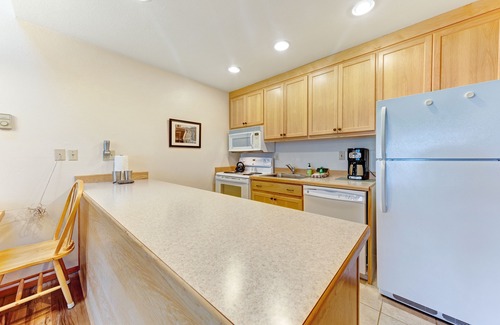 The condo itself comes with a fully equipped kitchen, as well as cable and free WiFi for your convenience. On rainy days, stoke up the fireplace with a few fire logs, and curl up on the sofa with a loved one for a movie night - or simply to watch the water flow past outside in the mist.