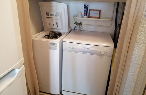 The kitchenette is equipped with a fridge / freezer, dishwasher, washing machine, 2 hotplates, mini oven, microwave, coffee maker, toaster.