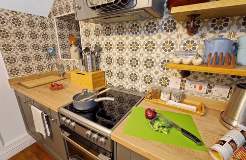 A beautiful characterful cottage in a peaceful location next to the river in the heart of Holmfirth and is the perfect place to relax and a short stroll to independent shops, bakeries, bars and restaurants. There’s plenty to do with popular folk, art, film, food festivals or why not book a wine tasting tour of Holmfirth Vineyard or catch a gig at the Picture Drome. Also a walking and cycling enthusiast's paradise with the Peak District National Park, Pennine Way and moorland on your doorstep. Guests can enjoy a comfy kingsize bed with ensuite bathroom including electric shower. Fully equipped vaulted ceiling kitchen including washing machine and fridge freezer. Living room is flagged with beams galore and exposed stone walls. We have used quality fixtures and fittings and decorated in an eclectic style which we hope has something for everybody. Cottage location is peaceful and private with a patioed sitting out area perfect for reading, relaxing and alfresco eating and drinking accompanied by the sound of the river