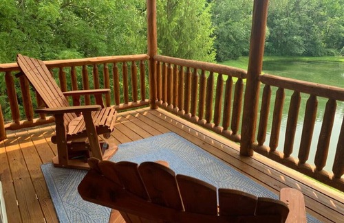 Waterview Lodge #1 is a stunning lodge suite perfect for couples, friends, or a romantic getaway. Relax in your hickory rockers enjoying the sounds of the fountain splashing into the pond. Or soak in the 2-person Jacuzzi tub while enjoying the natural light from the evening sun.