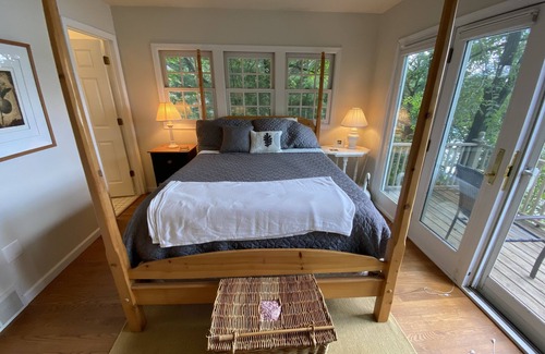 Our lakefront cottage sits at the top of a hill, so there are approximately 40 steps to get down to the beach. The beach is absolutely amazing, perfect for swimming with a hard sand bottom. This is an approximately 100 acre lake that is crystal clear and 40 feet deep. We have kayaks, canoes, and a paddle boat for guest use as well. The fishing is some of the greatest around. Bring your gear and you can catch some large-mouth bass, rock bass, trout, or pike. This is a recreational lake, where you can water ski, tube, or wakeboard (NO wake before 10 am or after 4 pm). Currently, we will not be offering use of boats, but if you have your own there is a public launch and some space to dock at our pier. Or if you prefer to stay on land, there is a bonfire pit on the beach and plenty of gorgeous sunsets and stargazing. There are also three bikes available.
