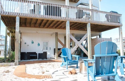 Entire residential home newly furnished for that perfect beach getaway for family and friends. Waverly Cottage is an elevated 2 floor, 3rd row home which overlooks lower 1st and 2nd row houses providing multiple views of the ocean from two beach-side decks. In addition, you’ll be able to catch the wonderful Topsail Island sunsets from two marsh-side decks. A private beach access is just steps away. Waverly sleeps 11 in 4 BR: 1 king bed suite, 2 queen beds, 2 bunk beds and 1 trundle.