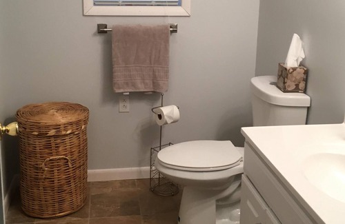 There are 2 bathrooms (1 upstairs; 1 downstairs), each with shower, and a full laundry room. Home is full stocked with sheets, blankets, pillows, and towels.