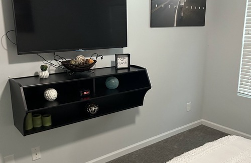 Incredible kitchen!Nice backyard with all your grilling needs. Big open family Room with A beautiful fireplace .This is a 2 bedroom home. Both rooms have Queen Beds and Cable Tv. We also have an air Mattress and And a beautiful Sofa bed for additional guests if needed.Let’s not forget 10 minutes from Airport and 20 minutes to Downtown Atlanta..
