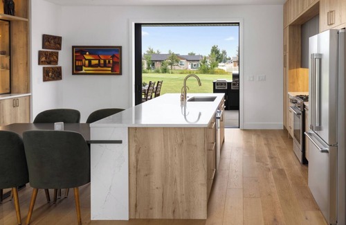 Simply put our listing is a stunner and the best value for the money in our area. The location is fabulous, quiet, calm, and an escape from the norm. We don’t live in this 2022 Parade of Home, but built and designed it to be a unique treasure on Lake Hills Golf Course. The sunsets in any season, warmth in the summer, and peace watching the snow fly in the winter. Close to trails, Lake Hills is perfect for cross country skiing, or of course hitting some greens. We recently started sharing it with you and are excited you are staying as our guest.