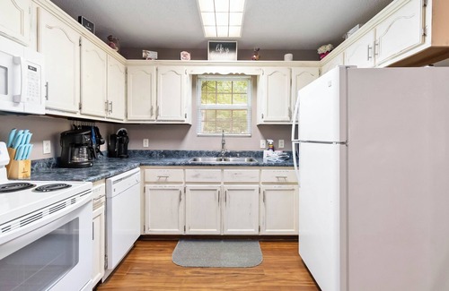 The kitchen comes fully stocked with everything you need to prepare meals during your stay, including cookware, utensils, a blender, mini fridge, microwave, stove, and refrigerator. Whether you’re cooking a romantic dinner or enjoying breakfast with the family, this kitchen is ready for any culinary adventure.