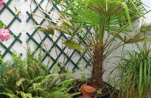 Our guests, who have stayed in the Autumn, Winter, and Spring, spend time on the terrace in mild, sunny weather; they appreciate being within five minutes on foot from shops and restaurants in a lovely, friendly village; they use the apartment as a convenient base to visit the many cultural attractions etc. of Andalucia, such as Alhambra Palace and the Mezquita. UK tv channels through the internet are available, using guests own tablet/laptop, if it can be connected to the tv; an Amazon Fire Stick is available. The lounge/dining room and has sofas and an armchair, dining furniture. table lamps, coffee tables, original paintings, ornaments, satellite TV, a hi-fi system, and air-conditioning/heating. There is an adjoining terrace with chairs and a table. The master bedroom is complete with double wardrobe, bedside cabinets, table lamps, original paintings, and with patio doors opening onto an adjoining circular terrace. There are two twin bedrooms with built in double wardrobes, bedside tables and table lamps; these bedrooms are wonderfully light and airy: one has patio doors and the other a full length picture window. The master bedroom and one of the twin-bedded rooms have air-conditioning/heating. There is an inner terrace with a garden: a delightful area in which to relax and enjoy the plants. The paintings in the lounge, dining area, hall and bedrooms are Nalini Cook's original works. From the master bedroom patio doors open onto a curved terrace with excellent panoramic views across to the Torcal and the surrounding hills and mountains and there is a larger terrace with access from the lounge with similar views. The kitchen is fully fitted and equipped with gas hob and electric fan oven.The inner terrace is a secluded outdoor area, a lovely place to enjoy the plants and flowers all the year round in the small garden. The bathroom has a full sized bath with shower, vanity unit, toilet and bidet.